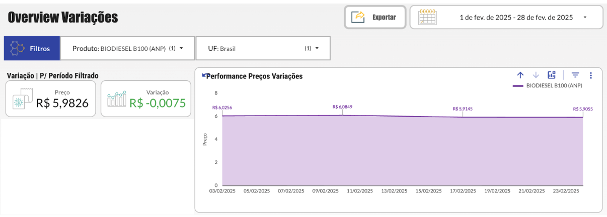 Apesar do dólar ter continuado em patamares elevados, porém menor do que em janeiro, o petróleo recuou ao longo do mês ajudando a reduzir a defasagem da Petrobras, com isso o diesel importado recuou. Enquanto o B100 andou de lado ao longo do mês.