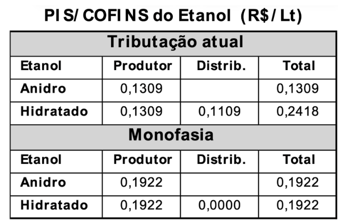 Um passo importante foi dado no início do mês, entrou em vigor a monofasia do PIS/COFINS do etanol, trazendo impacto tanto para o hidratado quanto para o anidro.